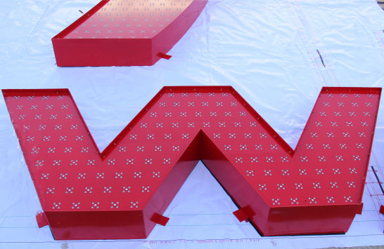 1、鋁板板材能夠熔接,在字體長(zhǎng)度上莫得制約,普遍鋁板發(fā)光字都在五六米之上,有些甚至超過十米。