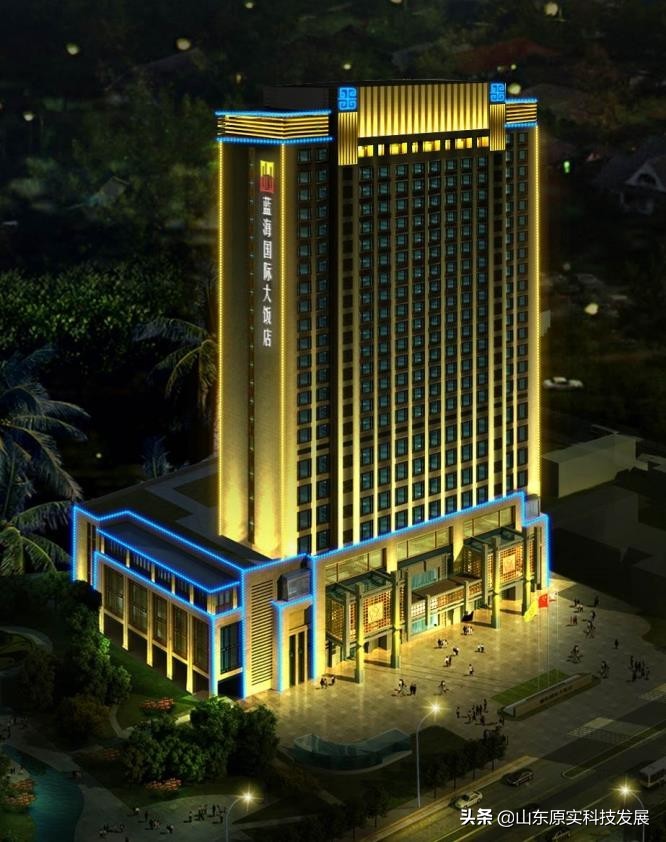 泰安藍海國際大飯店樓體鋁板沖孔燈亮化工程